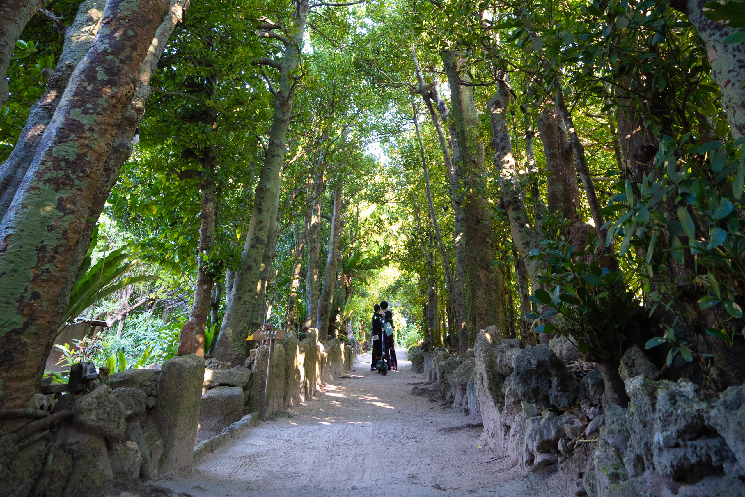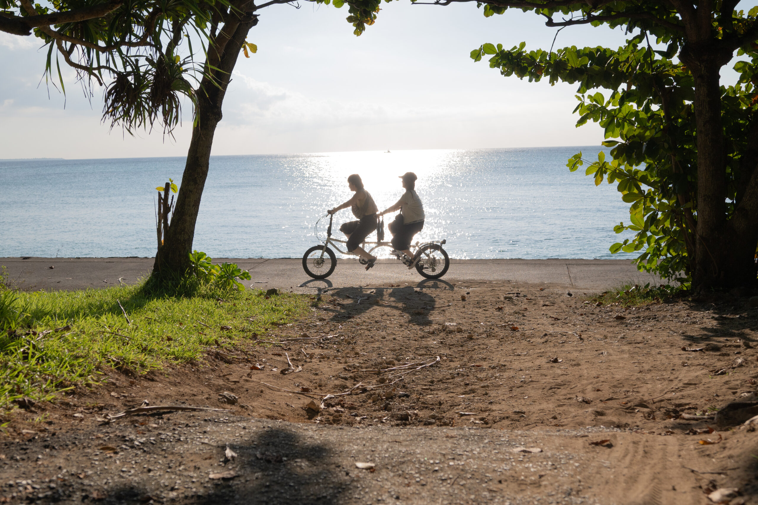 備瀬ならではの観光人力車もあり、案内人とともに、ふくぎ並木の魅力を知ることができます。周辺には、シュノーケリングやサップ、シーカヤックのほか、レンタサイクルやキックボードのサービスも利用できるアクティビティショップがあります。