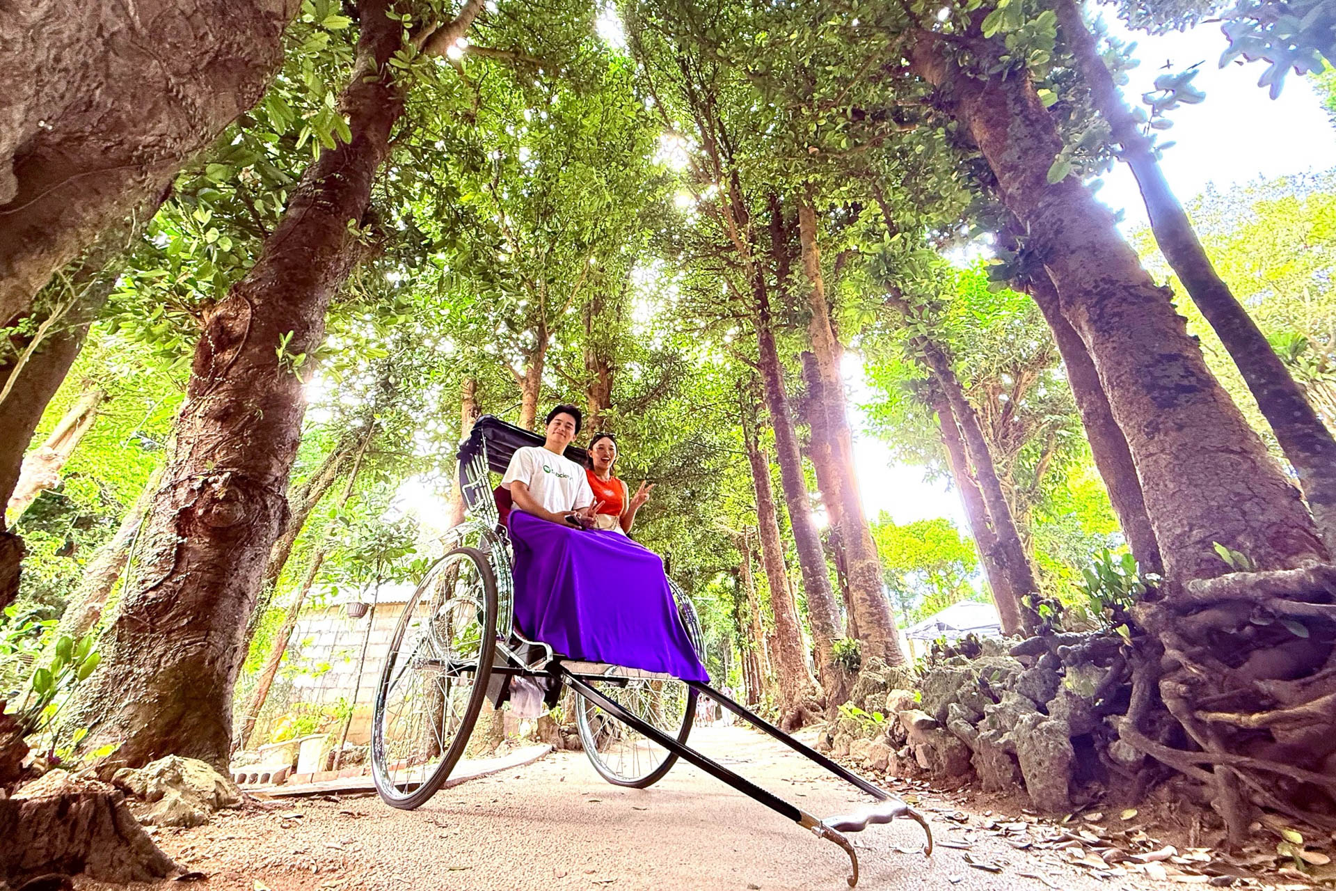 300年以上歴史のあるフクギ並木を沖縄唯一の人力車でご案内^ ^ 女子旅、カップルでのデート、家族旅行の思い出づくりに最高です。目の前に広がる青い海。古き良き沖縄の風景を、現代では味わえない非日常な乗り心地で巡ります俥夫が専属カメラマンに! 人力車は乗るも良し、降りて撮ってもらうも良し^ - ^最高6名様まで同時にご案内できます!