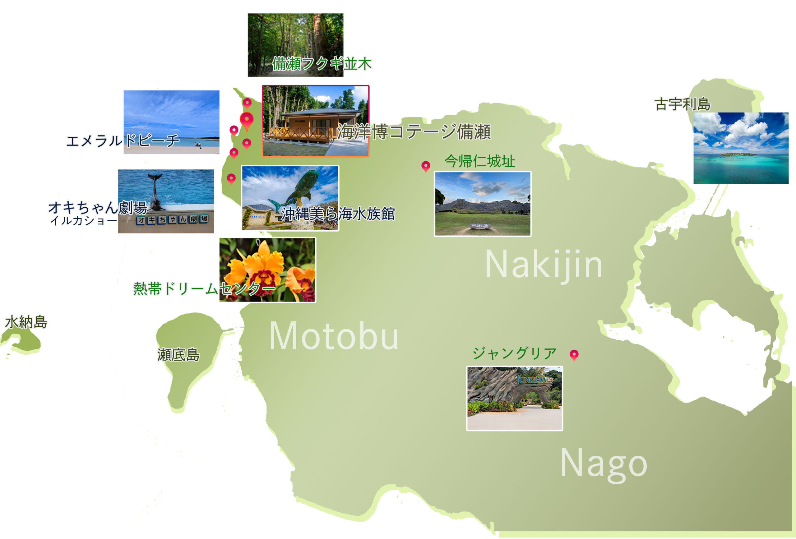 | 備瀬フクギ並木 | すぐそば | 徒歩0分〜 |